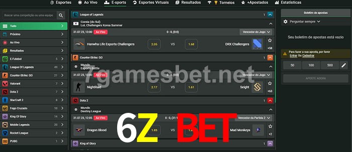 O 6Z Bet oferece uma grande seleção de opções de apostas em e-sports com probabilidades competitivas